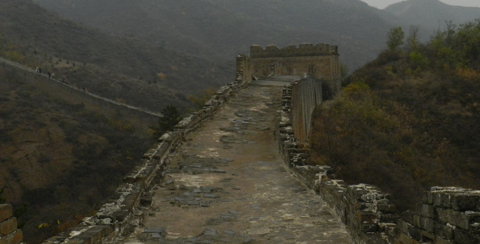 Alejándose de Pekín más de tres horas es posible llegar a un sector de la Muralla China poco concurrido y un tanto “salvaje” donde se podría caminar muchos kilómetros por sobre la misma llegando a partes no restauradas donde la veríamos intacta en su relación con el paso del tiempo, virgen, deteriorada y sin muchos visitantes. No lo dudamos. Bus, metro, tren, bus y bus hasta bajarnos en un estacionamiento a la orilla de la ruta, compramos provisiones en un supermercado y seguimos evitando a los extorsionadores taxistas que insistían en que estamos perdidos. Comenzamos a caminar haciendo dedo, ¡suerte! una camioneta que transporta carbón nos deja en frente de los accesos oficiales a esta sección de la muralla y también baña nuestras caras y ropa con gran parte de su sobrante. Mugrientos comenzamos a caminar sobre/adentro de la muralla, tal como habrán estado aquellos obreros y obreras de antaño.