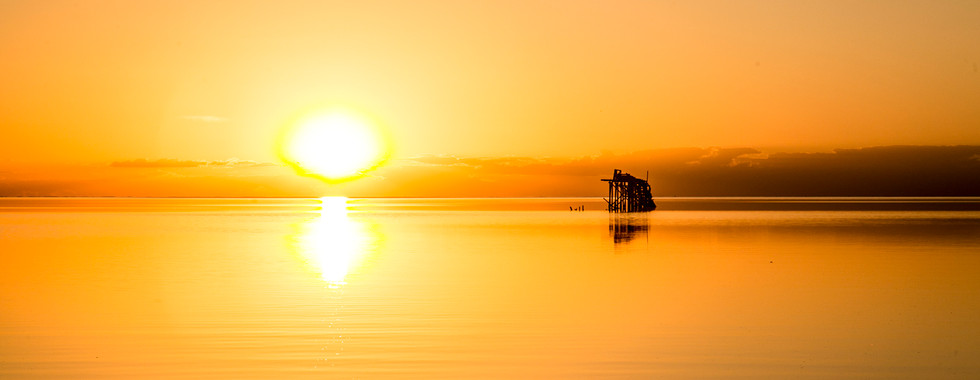 Como una hoja de papel dibujada donde el juego consiste en suprimir lo dibujado, el blanco omnipresente nos recibe dándonos a entender que hemos arribado. ¡Si, ya llegamos! pero tenemos la sensación de no haber llegado a un punto determinado sino a la mismísima inmensidad, el horizonte lejano sin un obstáculo interrumpiendo la visión nos da una sensación de inferioridad e insignificancia, silencios totalitaristas, fauna desconfiada, flora minimalista. No sólo frente al mar se obtiene un horizonte infinito y difuso en la lejanía, también sucede aquí en este campo de batalla donde la arena ha perdido territorio con la sal y esta lo ha cubierto todo, solo una aliada ha logrado sobrevivir temporalmente en esta aparente desvanecida naturaleza: el agua.